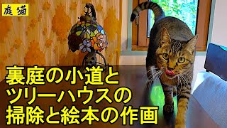 | タイトル | 【庭猫」裏庭の小道とツリーハウスの掃除と絵本の作画 |