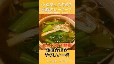 簡単レシピ・料理 めんつゆで簡単おいしく『小松菜とえのきの和風カレースープ』 – 献立提案 月の皿